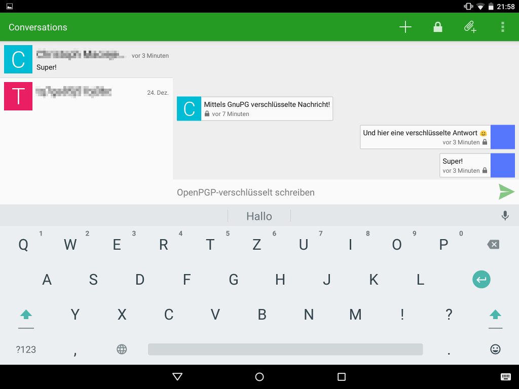 Daher bevorzuge ich die GnuPG-Methode, die ich bereits seit Jahren (oder Jahrzehnten) bei der eMail-Kommunikation verwende.